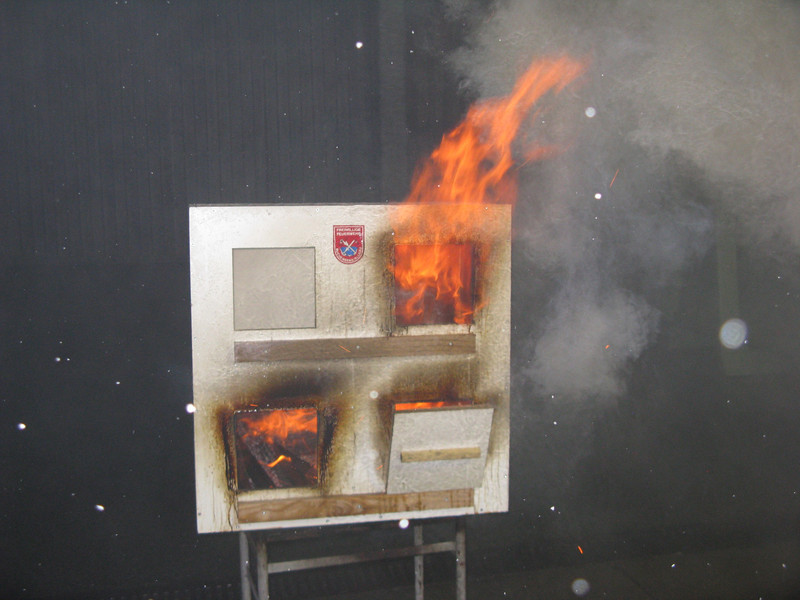 Mit einer sogenannten "Flashoverbox" wurden die Atemschutzkräfte in der letzten Übung darauf sensibilisiert, die Situation im Brandfall richtig einzuschätzen. Im kleinen Maßstab können mit dieser Box die Brandausbreitung, die Temperaturentwicklung bis hin zum Backdraft und Flashover simuliert werden. Auch der Einsatz und Wirkung von Löschwasser können dort wahrheitsgemäß nachgestellt werden.